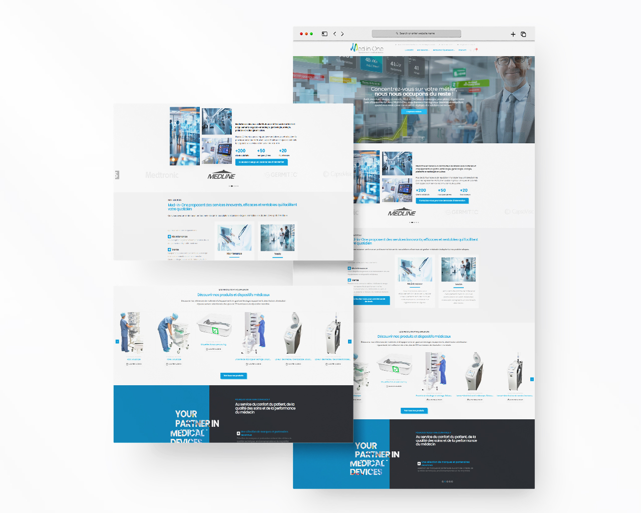 Le design du site reflète les valeurs de MedinOne : rigueur, innovation et fiabilité.